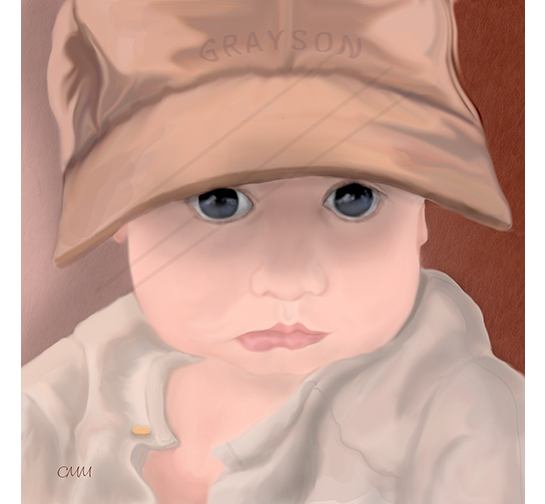 The portrait is designed in a square format 12”x12” to fit popular mat openings found on a huge selection of ready-made frames with mats. However, you may elect any size within that range.